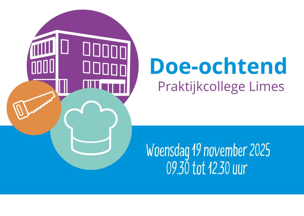 Op woensdag 19 november 2025 organiseren wij een Doe-ochtend op Praktijkcollege Limes voor leerlingen uit groep 8. Leerlingen bezoeken alle praktijkvakken die op Praktijkcollege Limes gegeven worden en krijgen de gelegenheid iets leuks te maken om zo kennis te maken met onze school.